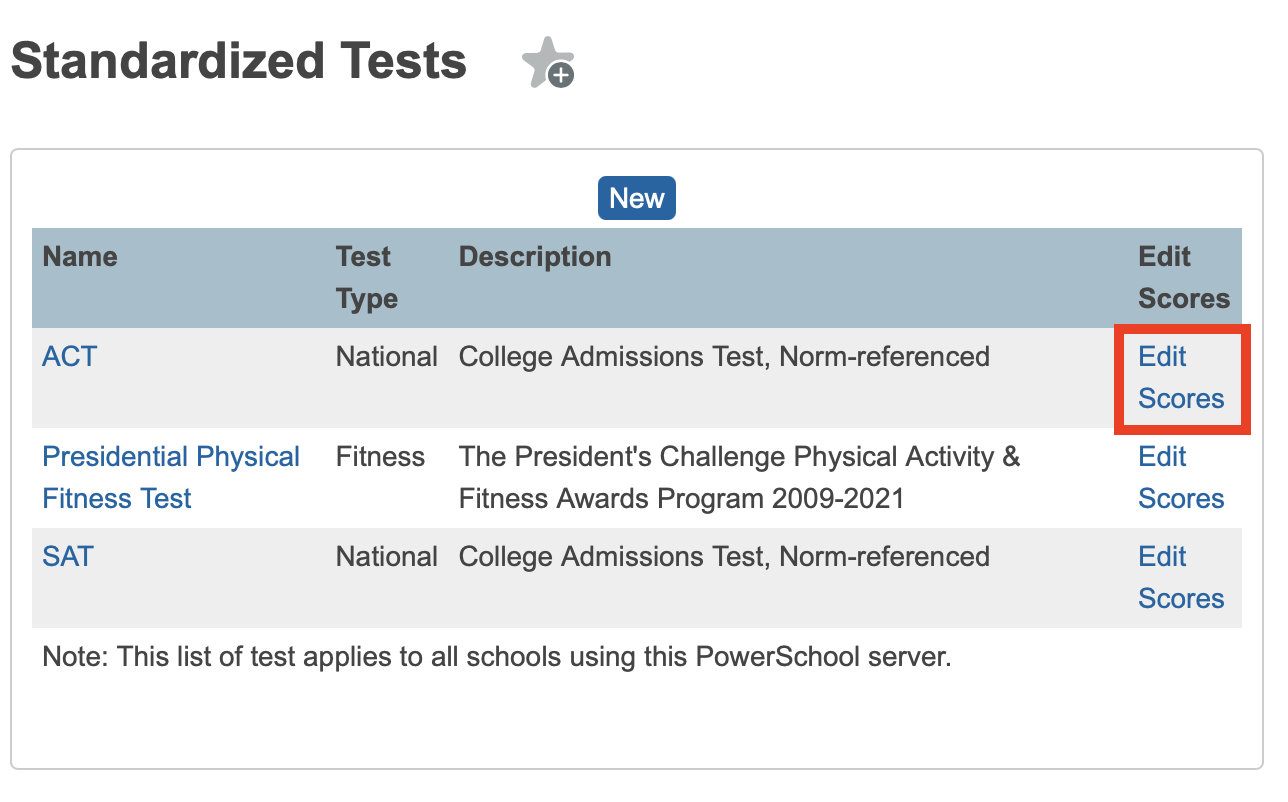 - Identify which test contains the scores that should be added to the plans and click the "Edit Scores" link on that line.